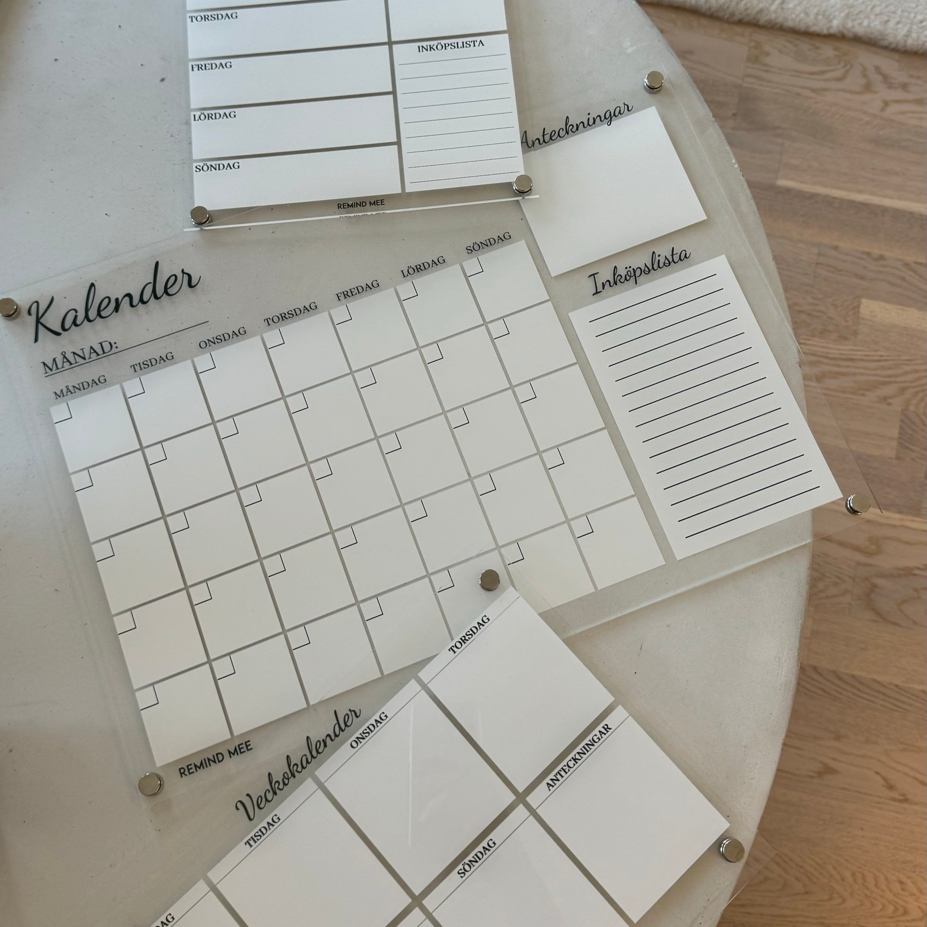 Organisera ditt liv på ett stilfullt sätt med vår kylskåpskalender! Missa aldrig mer viktiga datum eller inköpslistor. Vår kalender är inte bara praktisk, den är också elegant designad för att komplettera din köksinredning. Med tillräckligt med utrymme för att skriva ner alla dina planer och påminnelser, kommer den här kalendern att hålla hela familjen organiserad och i synk. Säg adjö till röriga anteckningar och välkomna ordning och reda med vår snygga kylskåpskalender!